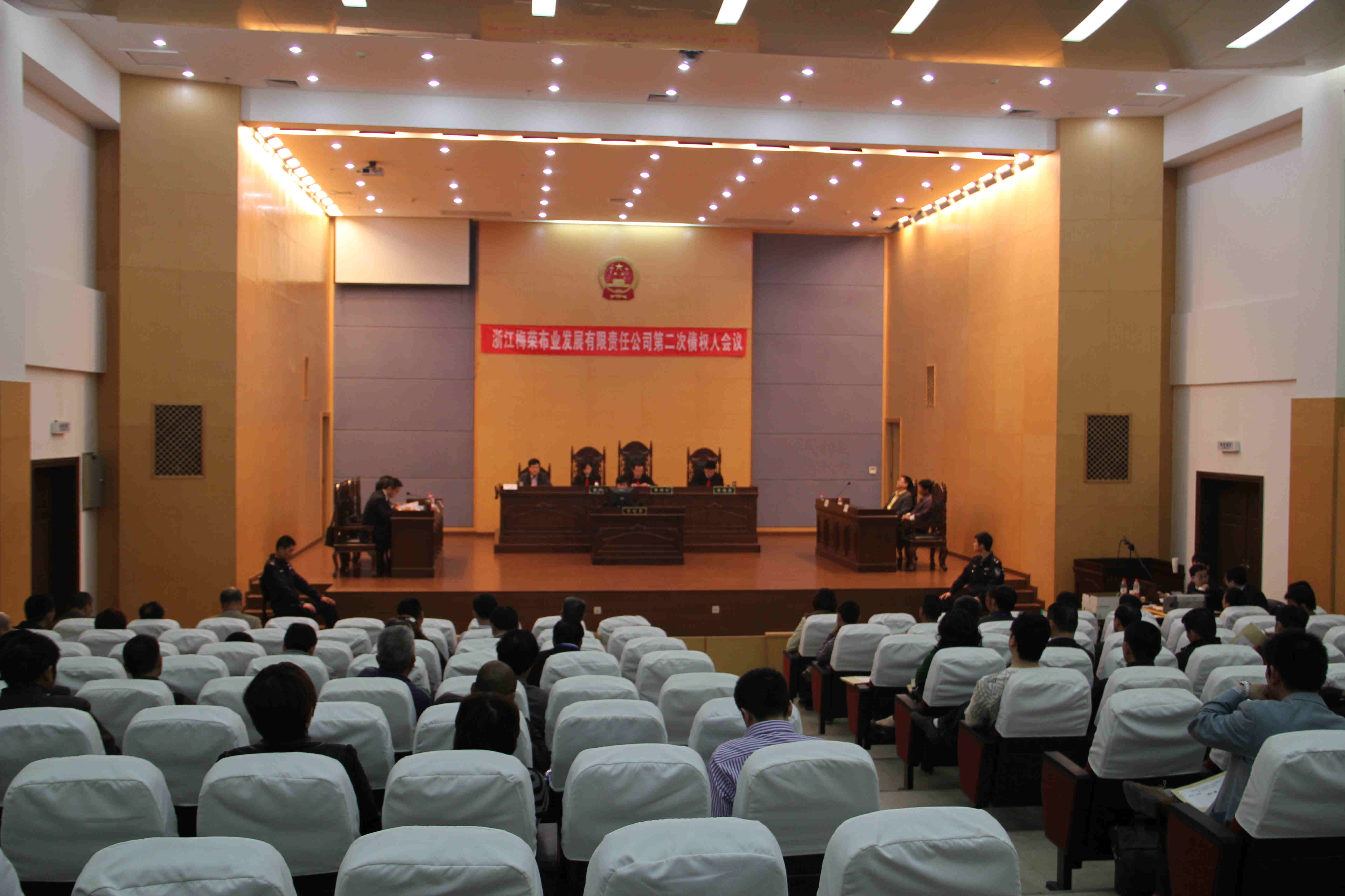 2011年4月24日,浙江梅荣布业有限公司第二次债权人会议在绍兴县人民法院召开,债权人和法定代表人、职工代表到会参加本次会议,会议首先由管理人做执行职务工作报告等,经过投票表决,会议最终通过了《破产财产变价方案》、《对外债权清收方案》。
